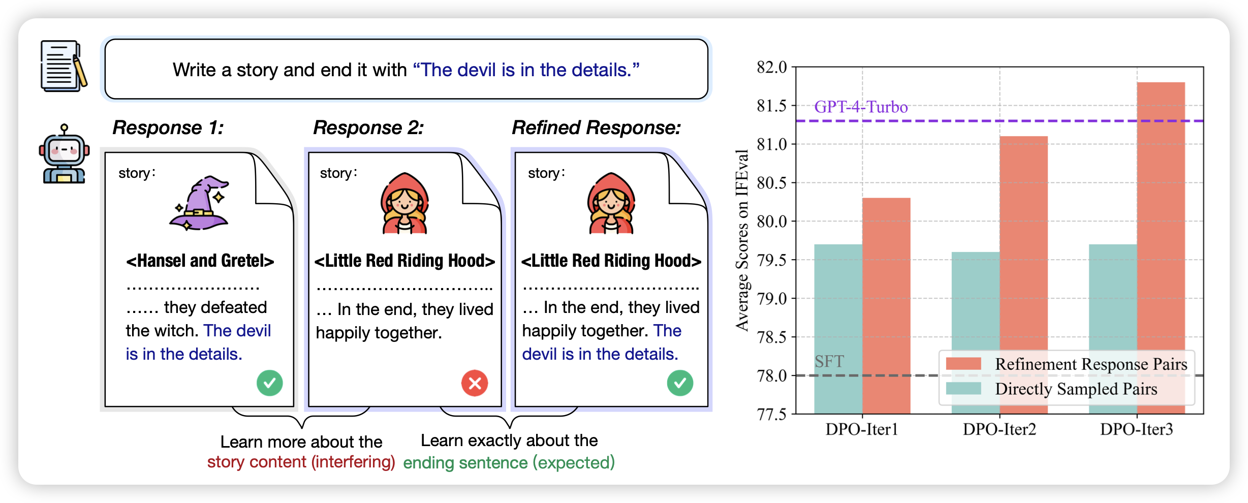 黄老师的工作,之前有个方向是让模型做self-refine,自己该自己的错,下次生成得更好。如果让self-refine的过程组织成一棵树,每次refine好多次,每个refine又可以再refine好多次……最后是不是就能生成出来dpo数据了呢?作者试了一下这个方案生成的dpo训练,发现比正常的dpo数据效果更好。