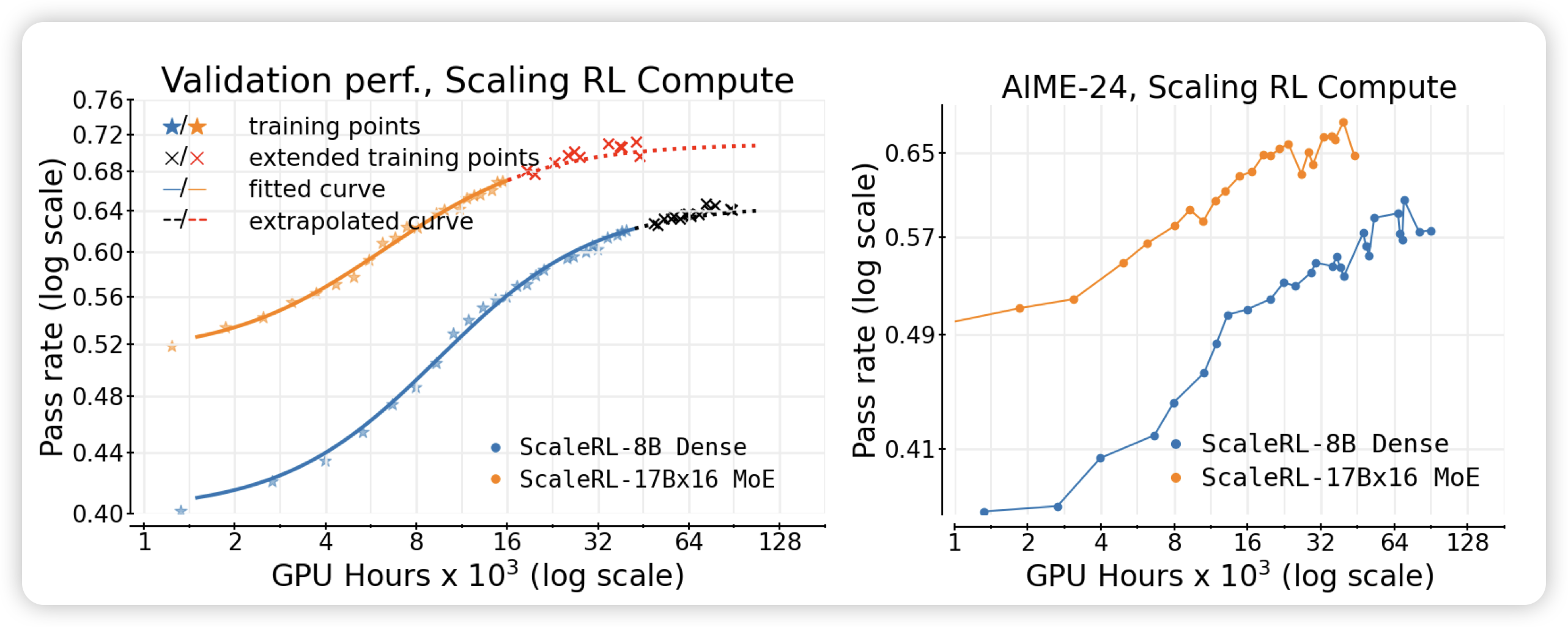 大家说RL手法对的话,可以”一直训一直涨“,是真的吗?meta这个工作用40000 gpu hour帮大家画了曲线。作者甚至给一个8B模型挂了10000gpu hour的算力